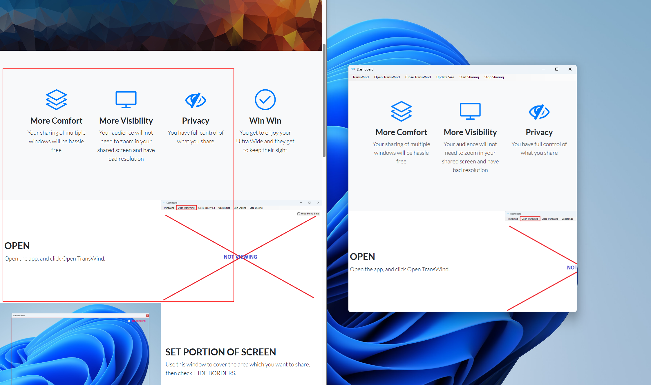 Controll whether you want the Sharing Screen to be bigger than the TransWind Window.